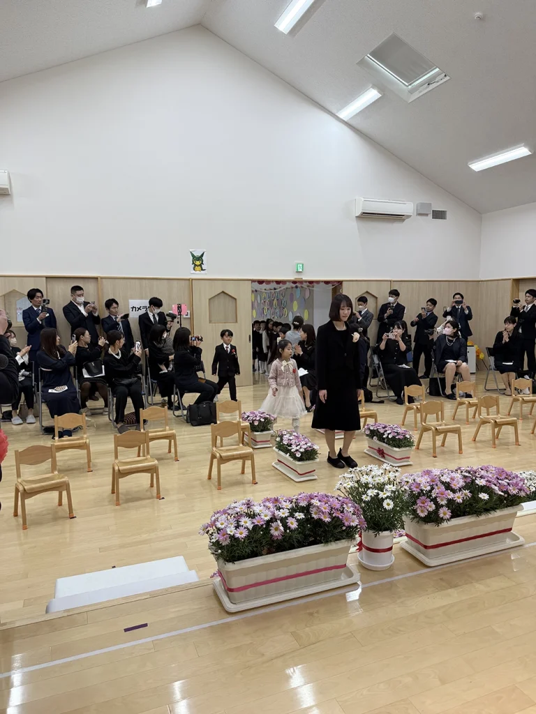 その日、ホールに並んだ子どもたちは、いつもの元気いっぱいの顔とはちょっと違いました。正装に身を包み、背筋をピンと伸ばして、どこかキリッとした表情。ほんの数年前まであんなに小さかった子たちが、こんなにも凛々しくなるのかと、毎年のことながら驚かされます。