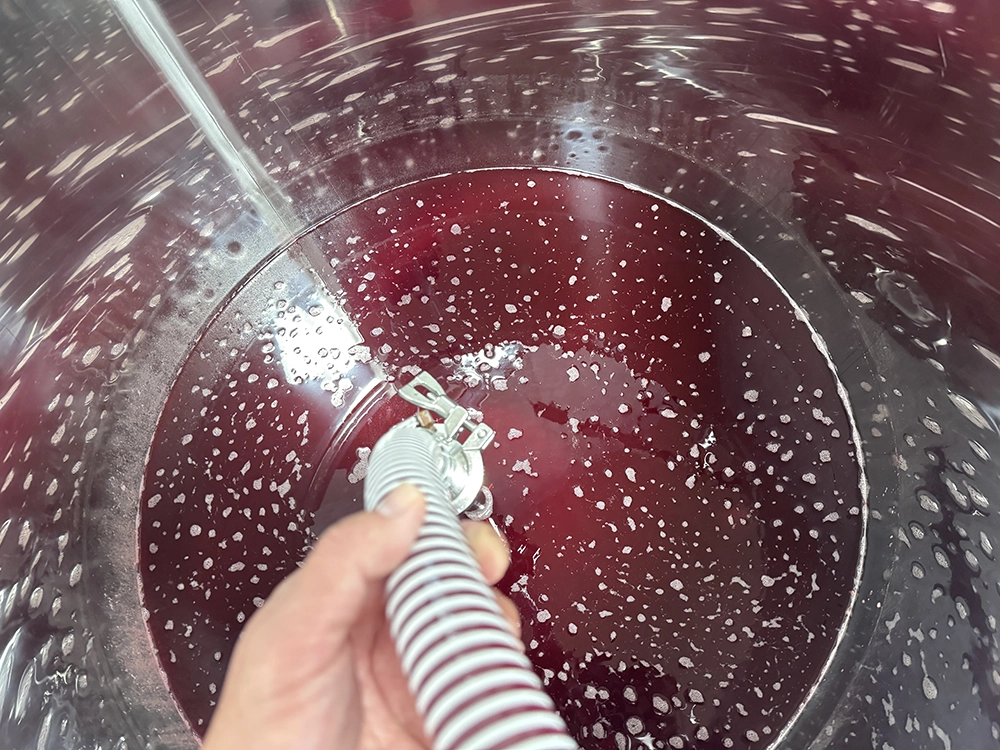 2025年産のブドウはもちろん、梨やリンゴなど合わせて15品種。仕込みタンク数も16本にも及び、初年度からワイナリーはフル稼働です。