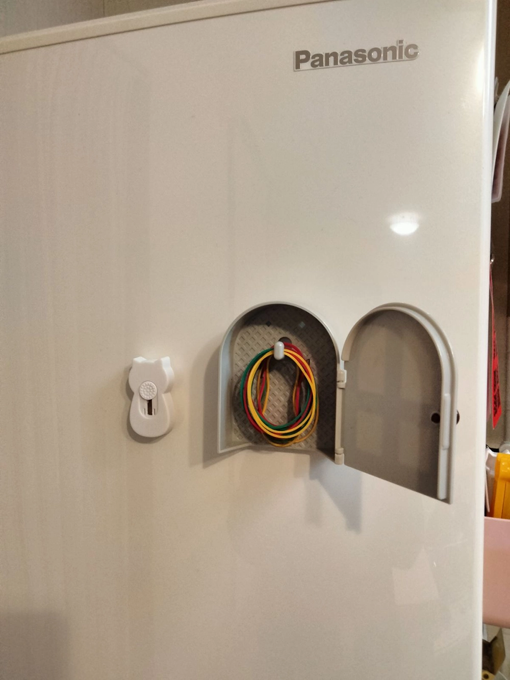 先日、自宅の冷蔵庫に何やら小さい玄関ドアの様なオブジェが付いているのに気づきました。